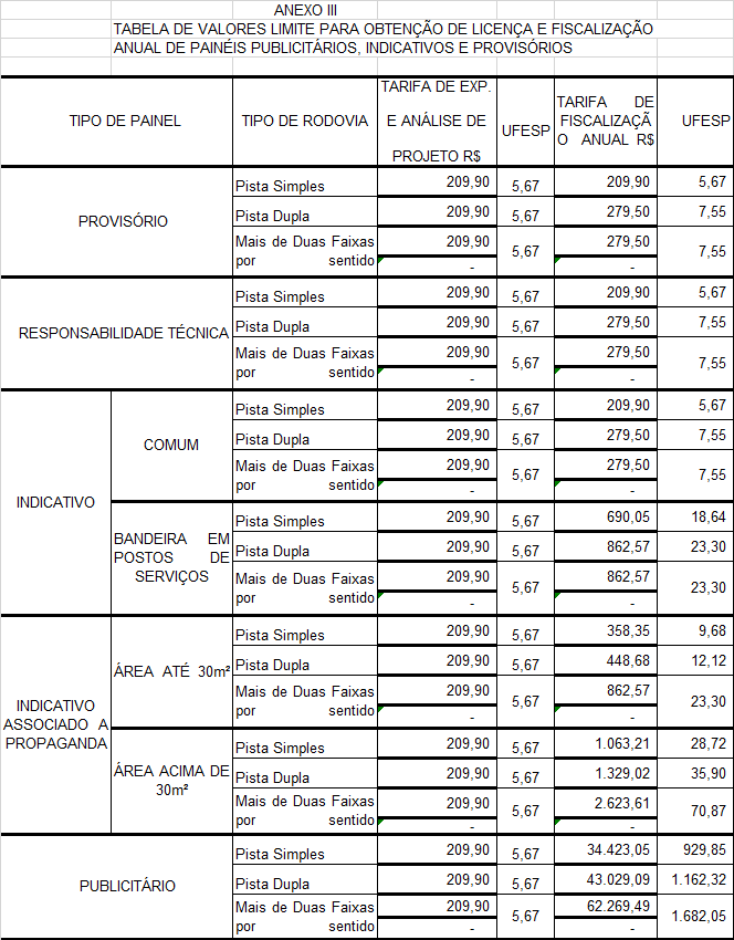 Portaria SUP/DER-172/2024 – Tabela de Valores Limite para Obtenção de Licença e Fiscalização