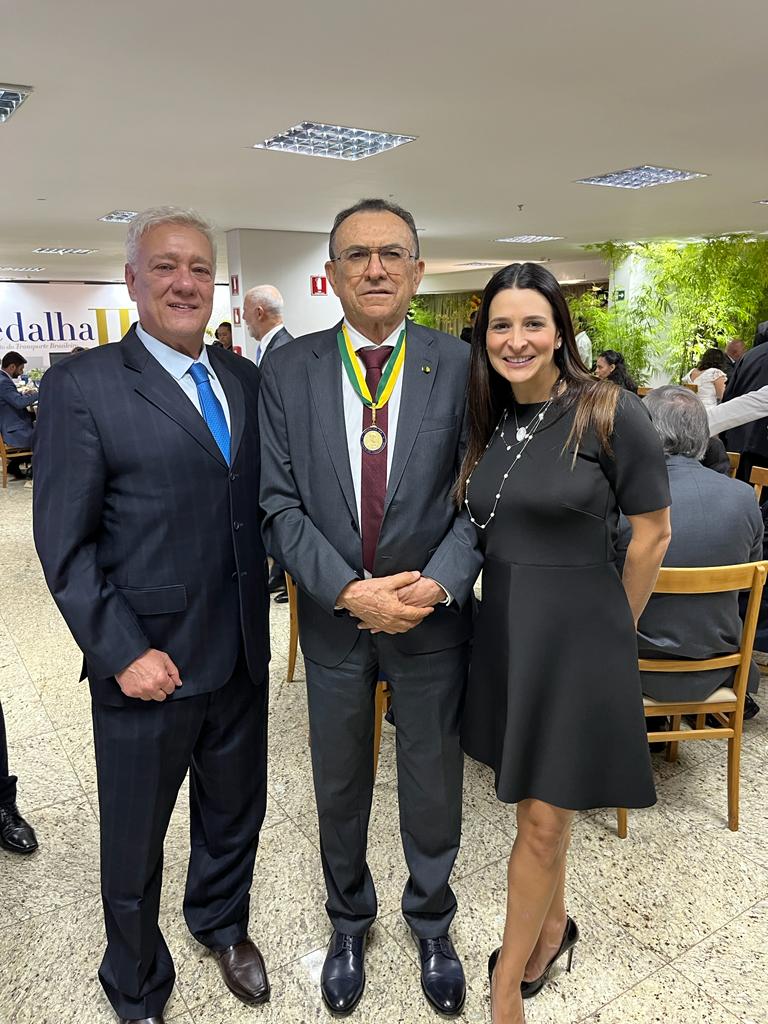 O presidente do Senado Federal e do Congresso Nacional, Rodrigo Pacheco, foi o grande homenageado da Ordem do Mérito do Transporte Brasileiro – Medalha JK, concedida pela CNT (Confederação Nacional do Transporte). O parlamentar recebeu, durante cerimônia, nesta quarta-feira (8), na sede da Confederação, em Brasília (DF), a comenda no grau Grã-Cruz (honraria máxima). SINDIPESA e FETCEMG marcafram presença na festividade.