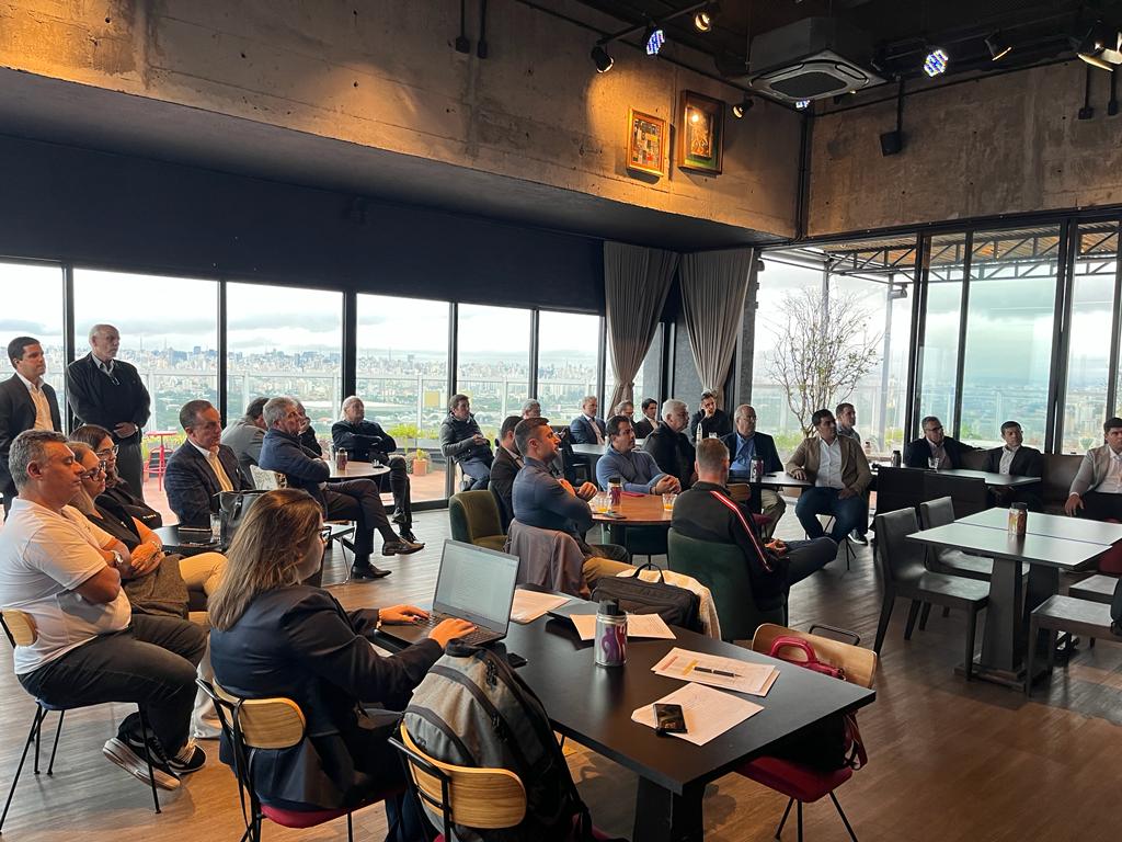 Na tarde de ontem (13/06), o SINDIPESA reuniu associados e mantenedores para uma tarde de networking e troca de experiências. Na ocasião, Julio Eduardo Simões foi reeleito presidente do sindicato por mais três anos, ao lado de Fabio Gaeta, Laercio Tomé, Luciano Bizzarri e Guilherme Saraiva, compondo a Diretoria Eleita. O presidente aproveitou a oportunidade e fez a indicação de outros seis diretores regionais para atuação Nacional (veja abaixo a lista completa dos Diretores Eleitos e Regionais). Os convidados puderam expor suas ideias e compartilhar os desafios que enfrentam no dia a dia da atividade de transporte, assim como assistir a duas palestras ministradas por representantes da Paulicon sobre as reformas Tributária e Trabalhista.