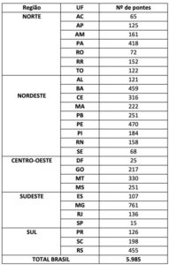 Atualmente, o Brasil possui cerca de 6 mil pontes em sua malha rodoviária federal, incluindo estruturas sob gestão federal e concessões privadas. A preservação e segurança dessas pontes são essenciais para a fluidez do tráfego, prevenção de acidentes e integridade da logística nacional.