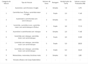 Ainda de acordo com o documento, a Tarifa Básica de Pedágio (TBP) passou de R$ 5,20 para R$ 5,70, para a categoria de veículo 1, nas praças de pedágio P1, em São José dos Pinhais (PR), P2, em Garuva (SC), P3, em Araquari (SC), P4, em Porto Belo (SC), e P5, em Palhoça (SC).